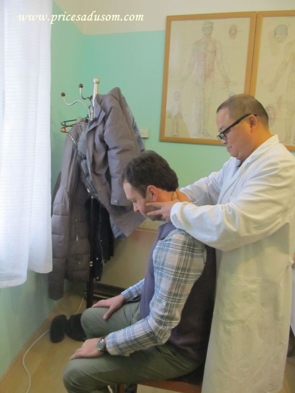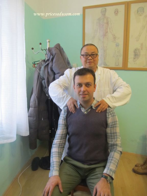 Doktor Čen Tjenši (50) je smireno radio, davao instrukcije svojim kolegama i sve vreme se osmehivao. Kasnije sam saznao da je to njegov zaštitni znak – da nikad nije namrgođen, da ne priča mnogo i da nikome ne daje lažnu nadu. Pacijentu odmah kaže da li može da mu pomogne ili ne. Mene je pregledao pre intervjua, rekao da isplazim jezik, zatim je osmotrio njegovu boju, a onda mi pogledao u beonjače, opipao puls i „namestio“ pršljenove na vratu, što, da budem iskren, nisam u tom trenutku očekivao. Ali, prijalo je. Dijagnoza na srpskom jeziku koji još uvek uči, glasila je ovako: „Treba da ojacas, zeludac malo usporen, tu odlazi energija“.