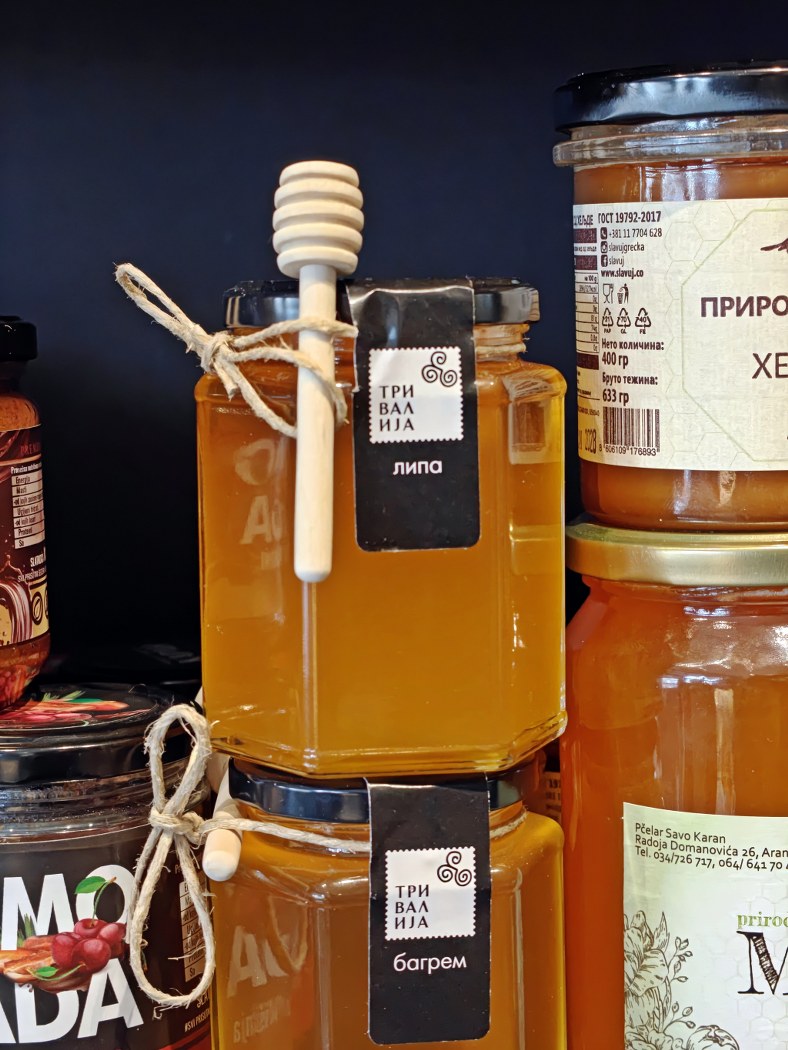 Na trenutak se iz životne priče ovih drugarica vraćam na police i među desetinama proizvoda malih proizvođača vidim tegle zimnice iz Jarmenovaca, zdrav čoko-krem iz Aranđelovca, Aninu zimnicu iz Ovsišta kod Topole, med sa Bukulje, ljute papričice iz okoline Knića, testeninu iz Ivanjice…