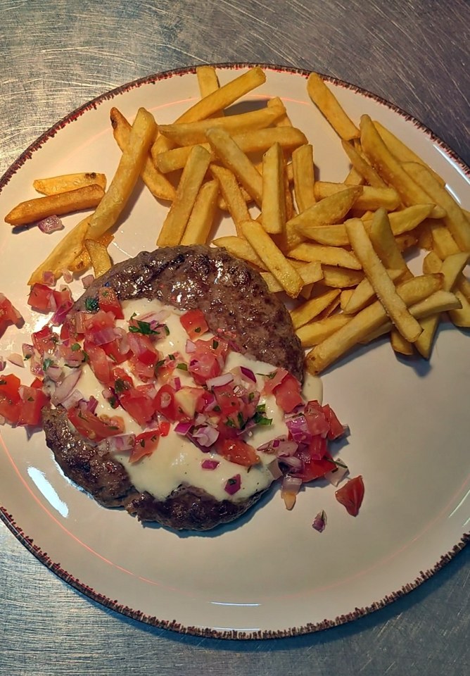 Gurmanska pljeskavica se ovde sprema po tajnoj recepturi, sa valcosotto sirom, dimljenom tucanom paprikom i dimljenim gronikom.