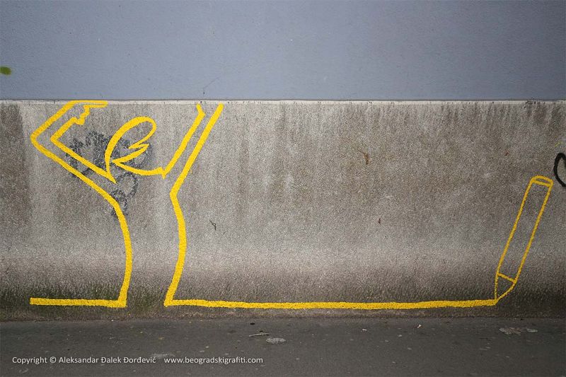 – Za većinu radova postoji priča, ali najlepše kod ove vrste umetnosti je da je svakome prepušteno da napravi svoju priču i interpretaciju. Sagovornici su nam bili neki od najaktivnijih i najprisutnijih crtača u Beogradu: Arzer, Tkv, Rage, Nikola, Lortek i Junk. Autora ima mnogo i teško je bilo izdvojiti nekoliko, pošto svi ostavljaju jedinstven trag – priča Aleksandar.