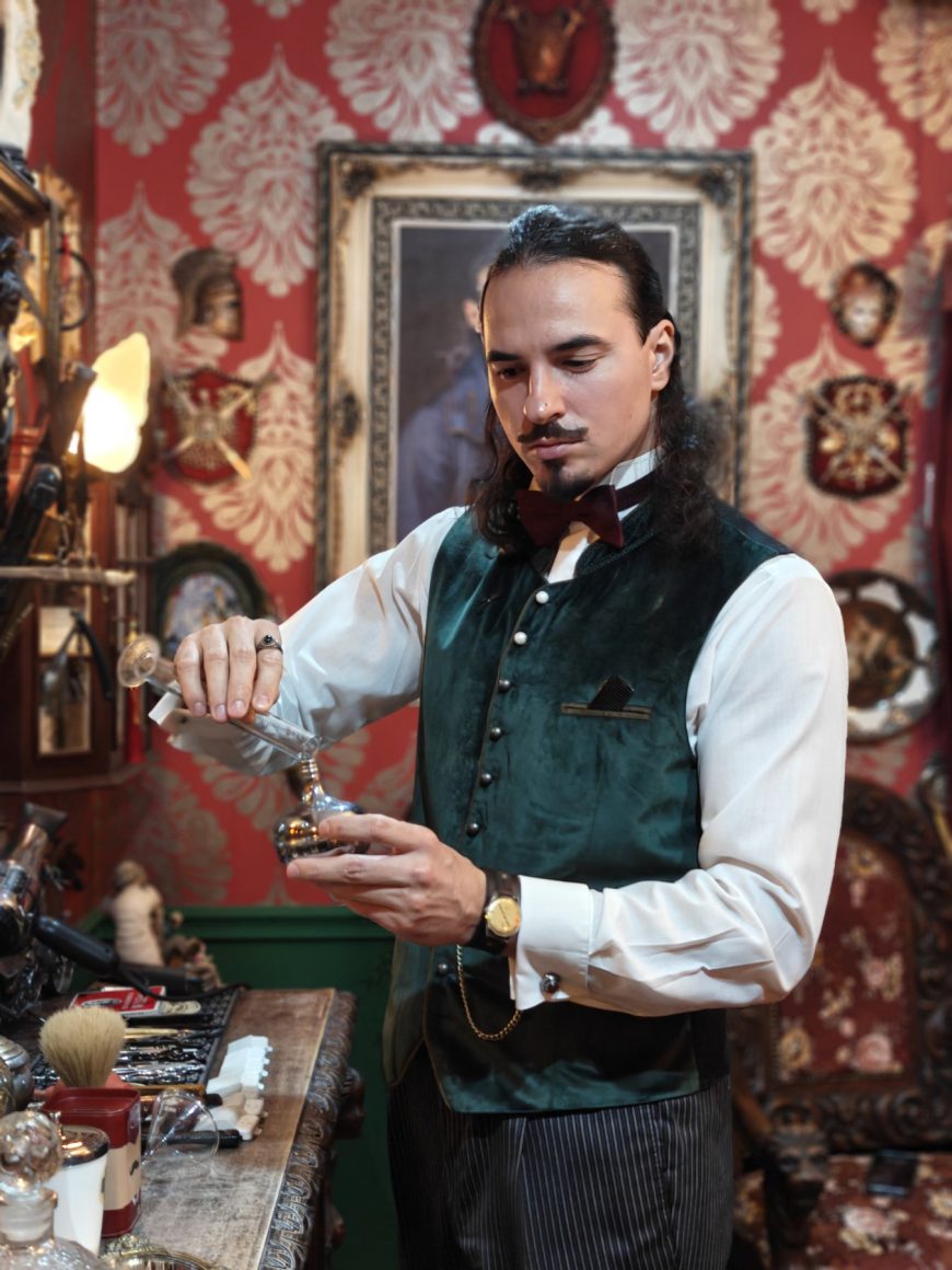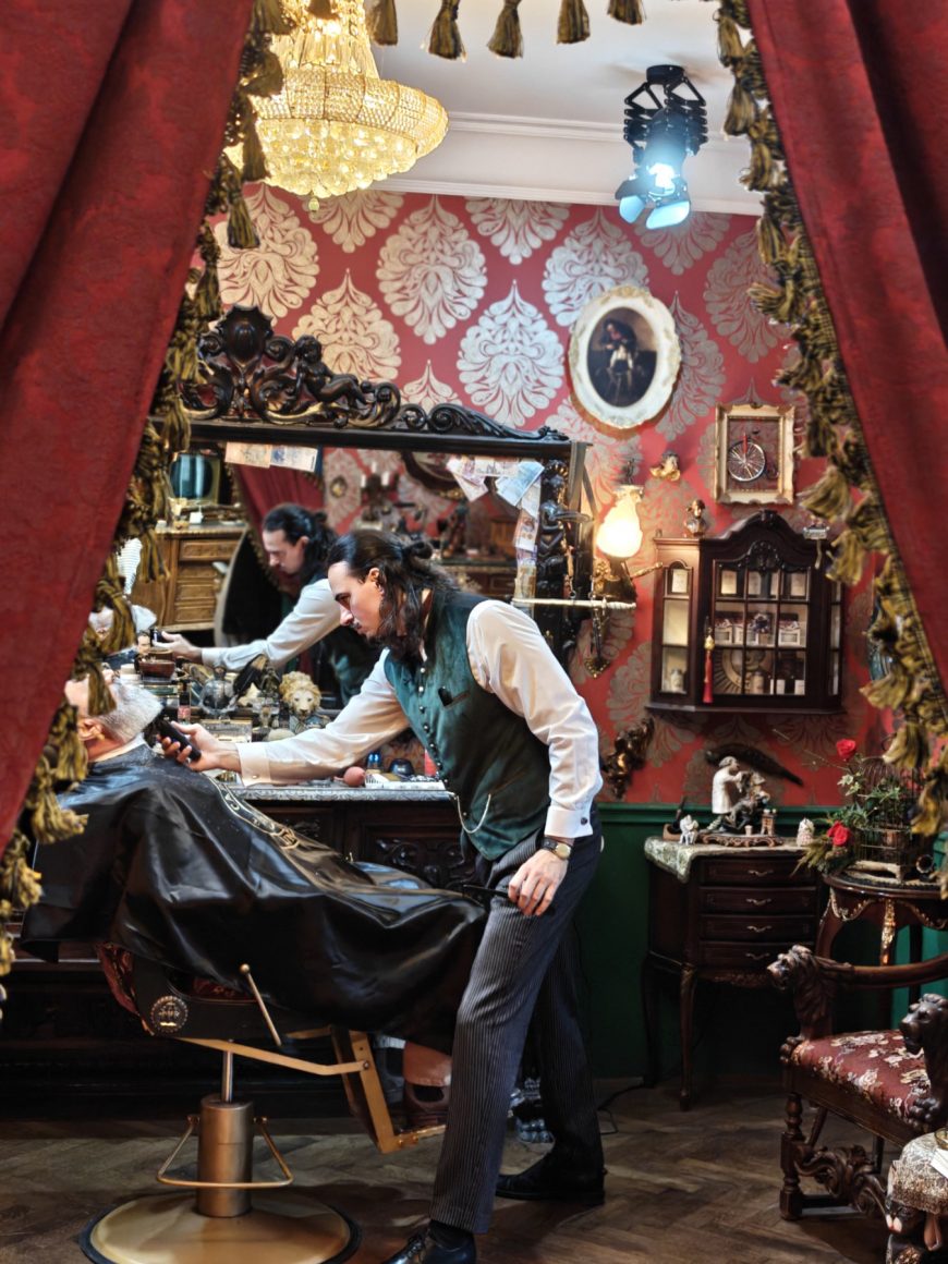 Oslanjajući se pre svega na zanat koji je naučio od dede, ali i od babe, koji su zajedno radili u svom salonu na vrhu Bulevara kralja Aleksandra, ovaj mladi čovek danas u svom kutku šiša na stotine Beograđana, njihovu decu, neretko kostimiran, kada svoje mušterije vraća u epohu.